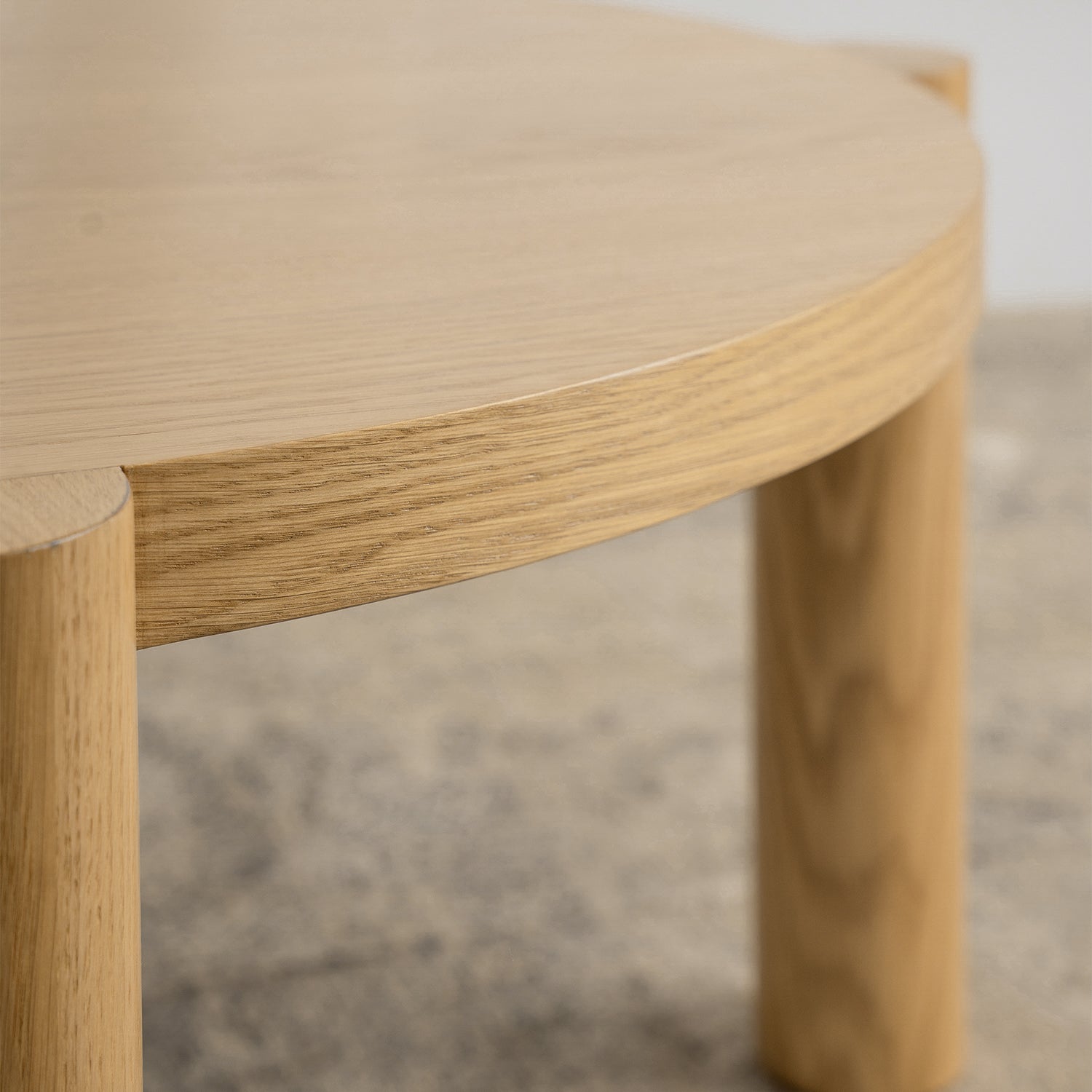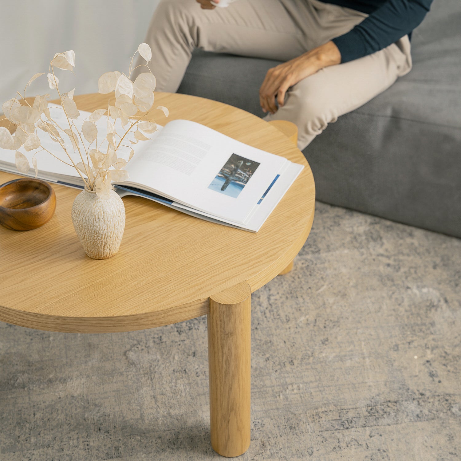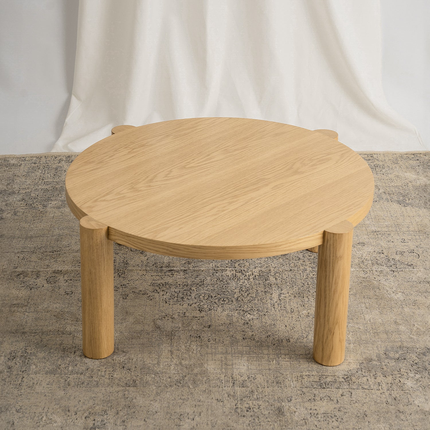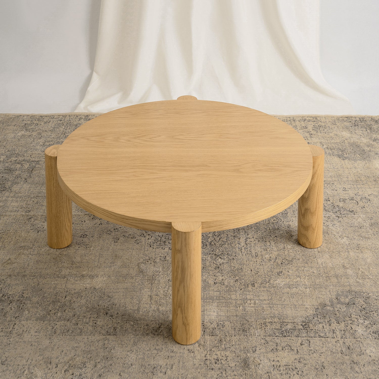 La Mesa Terra cuenta con un tablero de forma circular que se apoya sobre cuatro patas cilíndricas, integradas como una extensión natural del diseño. Esta composición genera una estructura sólida pero ligera, con una presencia fluida que se adapta con facilidad a distintos espacios. Al no tener límites visuales definidos, se convierte en una pieza versátil, acogedora y funcional.
